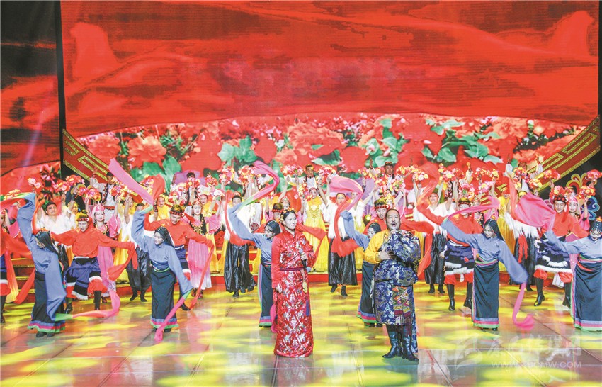 歌曲聯(lián)唱《百花爭艷》,是演出中第一個讓觀眾們大呼過癮的節(jié)目,年僅5歲的澤仁拉姆用一首藏族原生態(tài)歌曲《故鄉(xiāng)》,讓全場觀眾耳目一新。緊隨而來的藏族山歌《家鄉(xiāng)美》、漢族歌曲《和諧大家園》、回族歌曲《花兒與少年》、彝族歌曲《 尼雨尼杰》將音樂的魅力逐級顯現(xiàn),最后在經(jīng)典歌曲《愛我中華》中急速升華。6首歌曲風格各異,卻又一氣呵成,不僅集中展示了我州藏、漢、回、彝四個民族的藝術風采,還生動展現(xiàn)了我州各族人民其樂融融、團結進步的和諧面貌。