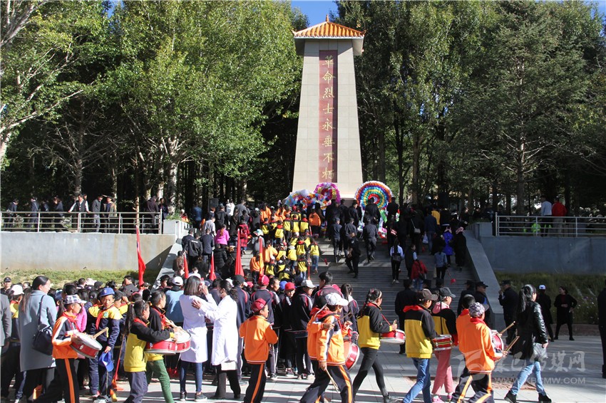 整個公祭活動莊嚴(yán)、肅穆而隆重,全體人員奏唱《國歌》,繼而少先隊代表獻唱少先隊歌,向烈士紀(jì)念碑敬獻花圈,深切表達對革命先烈的緬懷敬仰之情。