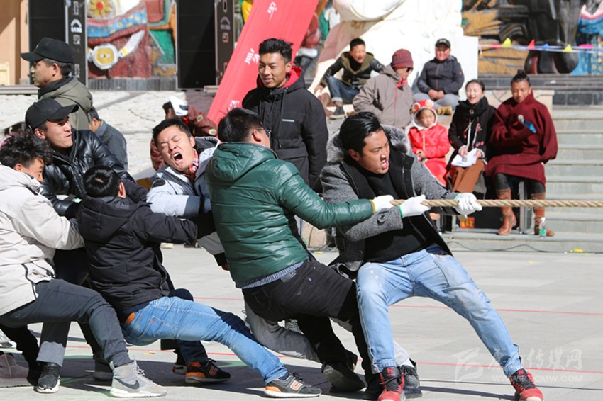 趣味比賽將干部職工和高城鎮(zhèn)農(nóng)牧民群眾分成若干個(gè)小組進(jìn)行比賽,“翻山越嶺 ”游戲,男生普遍輕松應(yīng)對(duì),女生由于沒有助跑,一直栽在“山坡上”翻不過去,引得現(xiàn)場(chǎng)觀眾大笑,最后在現(xiàn)場(chǎng)觀眾的齊聲加油下終于翻過。跳繩、袋鼠跳,參賽選手較勁比拼。“勇敢者”游戲,組員需先轉(zhuǎn)10個(gè)呼啦圈、踢毽10下、吹爆一個(gè)氣球、跳繩10下、喝完一瓶330毫升的礦泉水進(jìn)行接力,現(xiàn)場(chǎng)氣氛熱烈,觀眾的加油吶喊聲此起彼伏。“坦克大戰(zhàn)”游戲考驗(yàn)了大家協(xié)調(diào)配合能力,把觀眾的心都提到嗓子眼。最引人注目的拔河比賽開始了,每個(gè)隊(duì)都帶著勢(shì)在必得的勇氣上場(chǎng),結(jié)果年輕小伙們卻輸給了高城鎮(zhèn)農(nóng)牧民代表隊(duì)。
