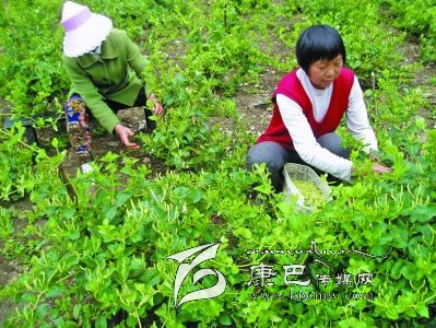 農戶采摘金銀花。