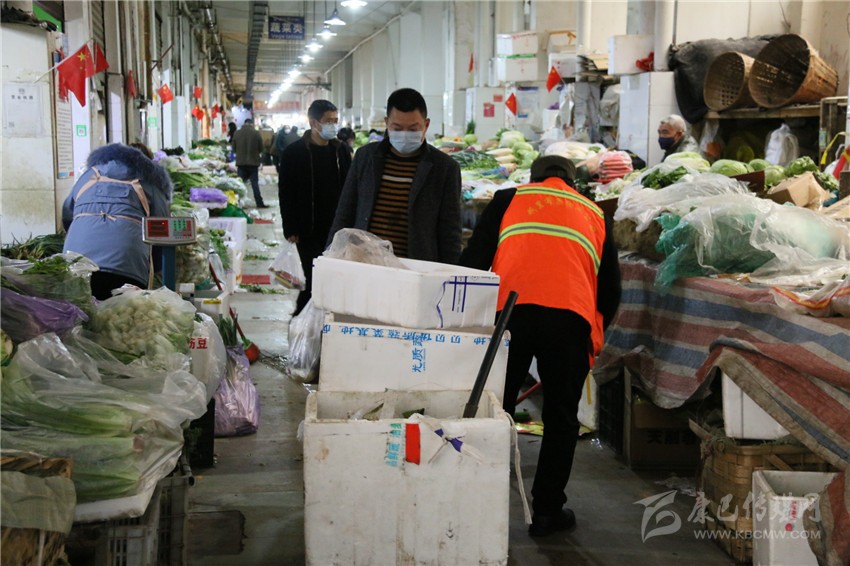 3月14日上午8點以前,龔學(xué)東再次深入攤位逐一檢查,確保市場全體商戶除了對各自店面的掃除、保潔和消毒外,還對諸如公廁、水池、垃圾桶、停車場等公共區(qū)域以及家禽水產(chǎn)售賣點、下水道、上下樓梯等重點部位,開展“零死角”全覆蓋的衛(wèi)生環(huán)境集中整治。對此,龔學(xué)東解釋說:“郭達菜市地處城區(qū)核心區(qū)域,人口流動量大、安全隱患不小、防控壓力倍增,齊抓共管做好病媒生物防制措施極其必要,而全面提升攤主衛(wèi)生意識、保障公共區(qū)域清潔消殺、減少細菌病毒滋生,就是最為有效有力的抓手。”