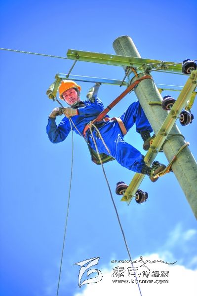 工人在長須貢瑪施放導(dǎo)線。