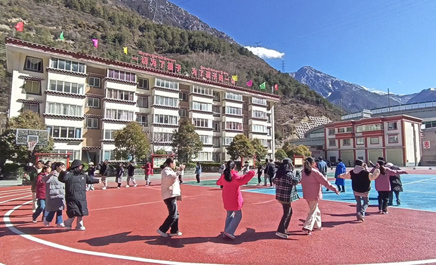 “跑馬溜溜的山上,一朵溜溜的云喲!端端溜溜的照在,康定溜溜的城喲!……”伴隨著《康定情歌》優(yōu)美的旋律,中心里的師生踏著節(jié)拍,擺動(dòng)著手臂,跳起了歡快的鍋莊,大家在歡聲笑語中為愉快而充實(shí)的一天畫上了圓滿的句號(hào)。