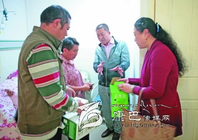 躺在防感染支架下的病人蘇國全家住在海螺溝新興鄉(xiāng)南門關(guān)村,是《甘孜日?qǐng)?bào)》一名職工的結(jié)對(duì)親戚,8月6日晚不幸燒傷后就送到州醫(yī)院進(jìn)行搶救,被診斷為大面積二度燒傷。屋漏偏遭連夜雨、船破又遇打頭風(fēng),原本拮據(jù)的家庭更是雪上加霜。在南門關(guān)村兩委的號(hào)召下,村民都自愿伸出援手,正當(dāng)大家踴躍捐款時(shí),有村民向村干部提議能不能請(qǐng)結(jié)對(duì)單位幫助。得知報(bào)社背包入駐小組正在躍進(jìn)坪村走訪,村支書和村委會(huì)主任拿出手話撥通了對(duì)方的電話。得到這一消息后,正在躍進(jìn)坪村的結(jié)對(duì)職工送去了500元慰問金,并對(duì)蘇國全的遭遇進(jìn)行了解。