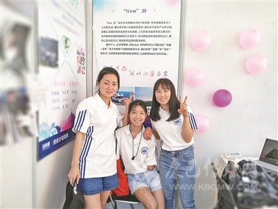 許方燕和隊(duì)員在創(chuàng)青春決賽自己展位前合影。