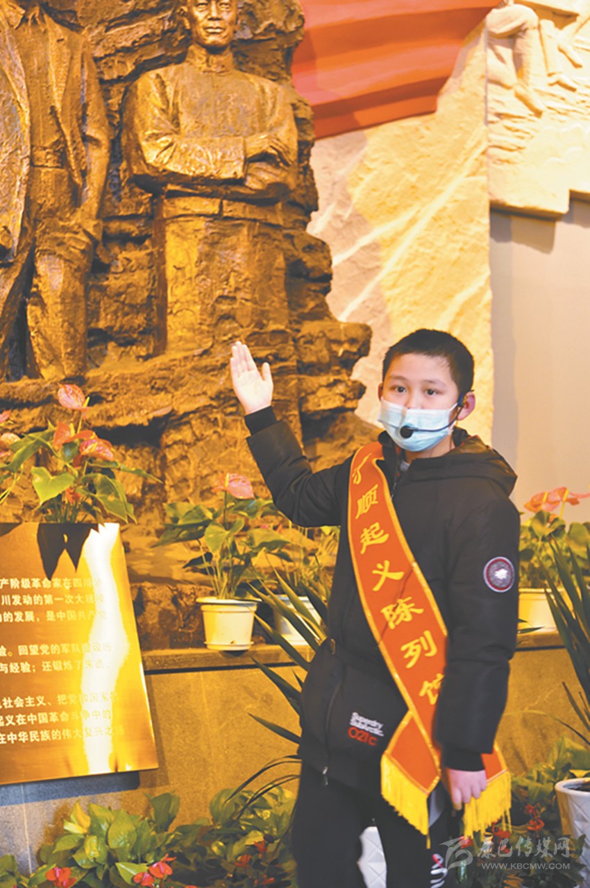 “小小講解員”瞿小峰正在給游客講解紅色故事。 本版圖片均由四川日?qǐng)?bào)記者 楊樹(shù) 攝