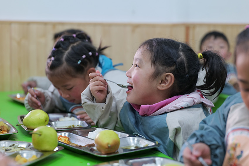 本網(wǎng)訊 排骨燒土豆、西紅柿炒雞蛋、紫菜雞蛋湯、酥梨……近日,在德格縣城關(guān)第一幼兒園,葷素搭配、選擇多樣、營(yíng)養(yǎng)均衡的餐食深受孩子們喜愛(ài)。幼兒彭措占瑪說(shuō):“我最喜歡吃幼兒園的飯菜,可好吃了!”