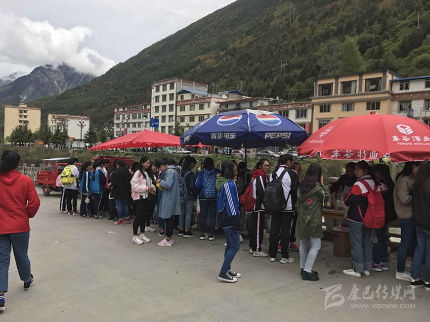 那么真實(shí)情況到底如何呢?7日,記者專門來到康定中學(xué)走訪調(diào)查。記者搭乘出租車前往學(xué)校,途中司機(jī)卻回應(yīng)“康中校門口那一段全是賣炸洋芋、炸雞腿的攤攤,車子根本開不過去,只能提前下車?!碑?dāng)記者步行過橋到達(dá)校門口路段時,雜亂無序而又異常喧鬧的場面立刻映入眼簾。約摸十來家燒烤油炸“流動攤點(diǎn)”上,商販們手中的烤具上下翻飛,幾十名身著“康定中學(xué)”校服的學(xué)生駐足其間,從校門出入的車輛不斷鳴笛避讓??久娼?、炸土豆、烤雞腿,濃濃的油煙、各種調(diào)料混合的氣味、滋滋的油炸聲……儼然一副“美食街”的火爆景象。