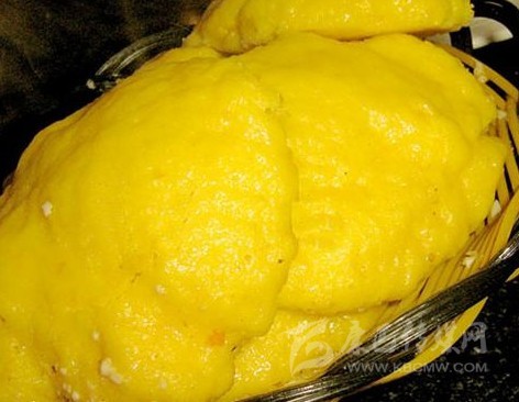 玉米饃是爐城平常人家常食的,就是許多做小生意開(kāi)小攤鋪,常蒸食玉米饃。雅安人彭大春夫婦,早年曾在康定幫人干活,夫婦善做小吃。爐城大米昂貴,知爐城愛(ài)吃玉米,又愛(ài)吃“焦粑”(一種以面粉起酥肉餡炕餅的小吃)習(xí)慣,用金鉤鮮肉做餡,仿效“焦粑”的做法,用上等玉米面,創(chuàng)造出玉米面包金鉤炕餅,以其香、咸酥、脆味長(zhǎng)誘人,食者排隊(duì)購(gòu)買(mǎi),風(fēng)行一時(shí)。