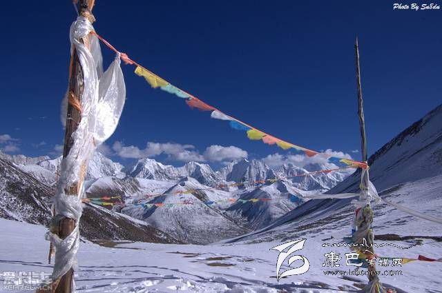 是觀貢嘎全景景觀平臺之一,在即將到達埡口的時候,首先看到的是一面壯觀的鈣化瀑布。在埡口的景觀平臺上可以看到貢嘎以及所屬的就做雪峰依次排列,十分壯觀。