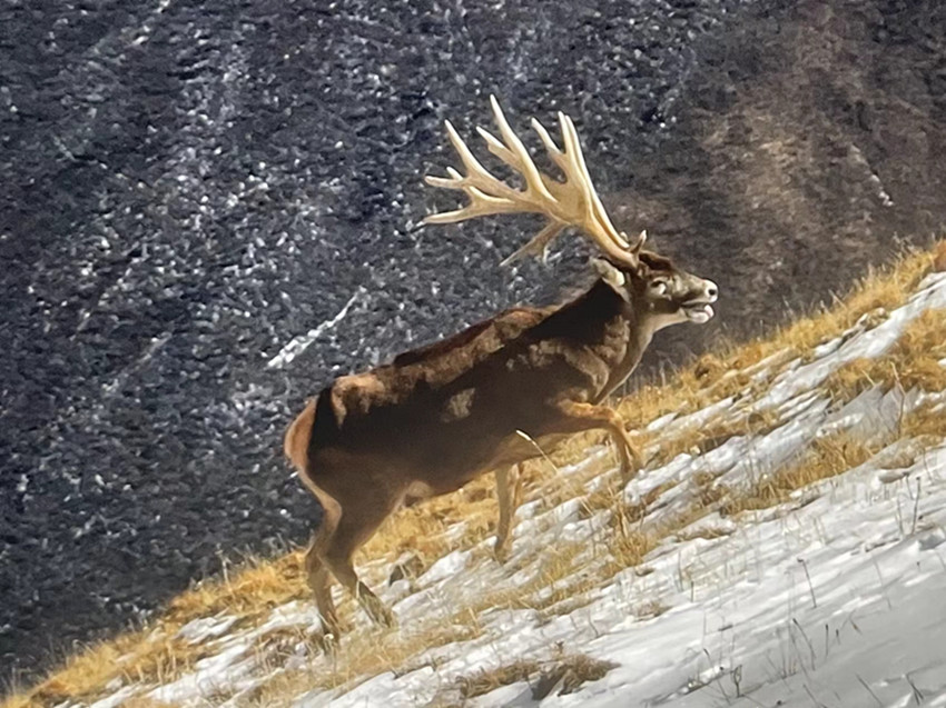 近日,攝影愛好者秋吉洛珠在年龍鄉(xiāng)境內的懸崖峭壁上,拍到了近300只巖羊和10只白唇鹿的身影。它們在峭壁山坡上奔跑、漫步、覓食,畫面非常和諧。白唇鹿被列入世界自然保護聯(lián)盟瀕危物種紅色名錄。隨著近年來全州生態(tài)環(huán)境逐年向好,各類瀕危動物數(shù)量也在不斷增加?!把┯蚓`”們得以在此繁衍生息。